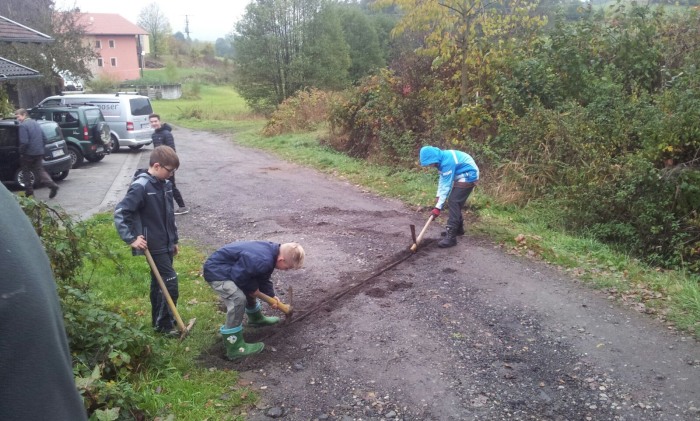 Auch im und ums Fischerhäusl wurde aufgeräumt und der Zufahrtsweg musste ausgebessert werden. Dies war eines der Hauptarbeiten. Außerdem wurde der Vorplatz zur neuen Lagerhalle hergerichtet.